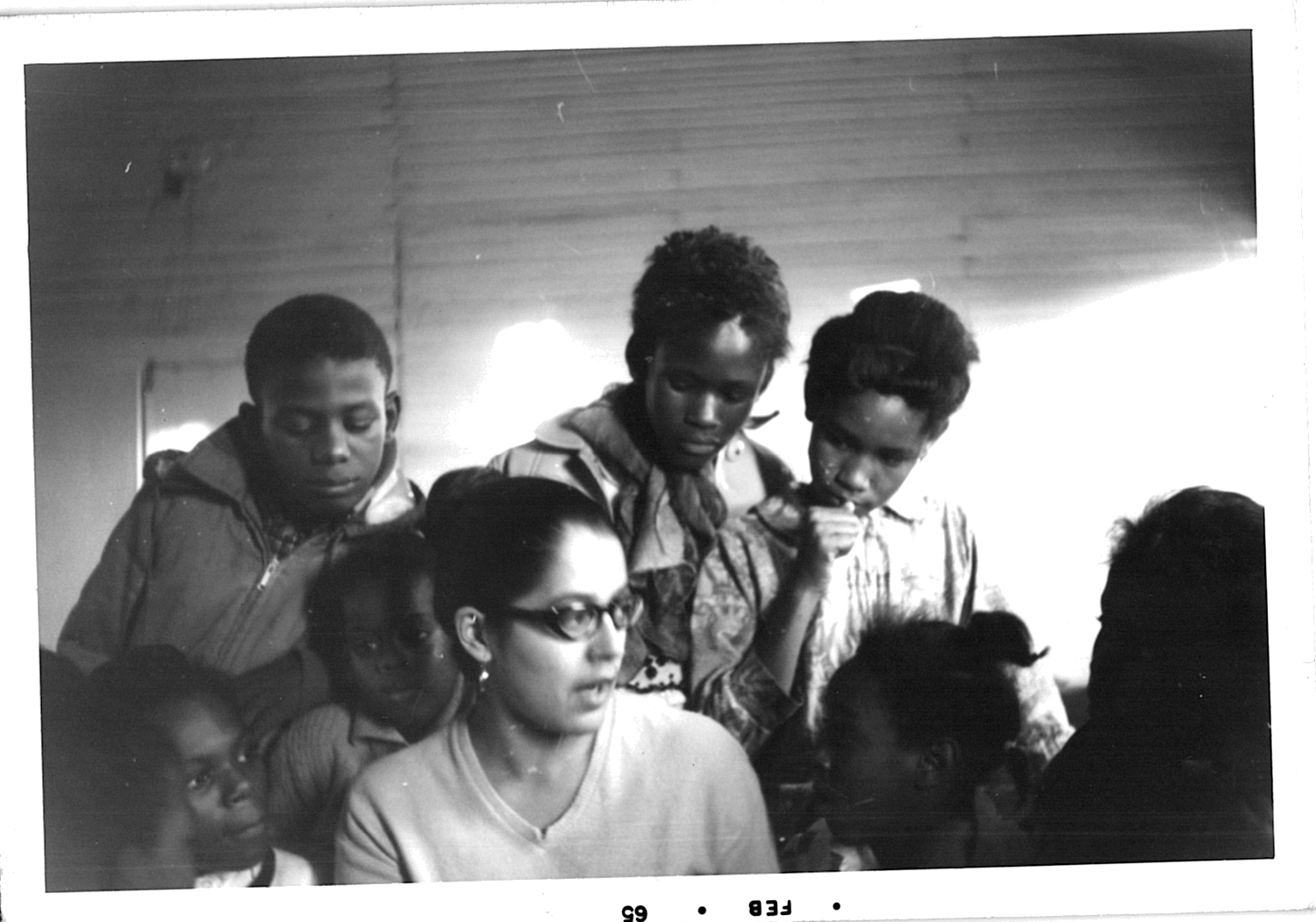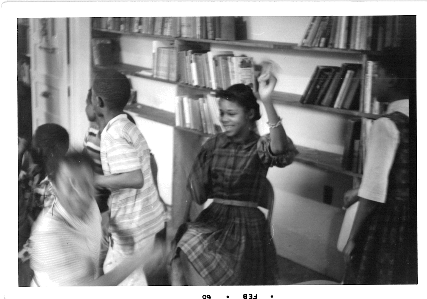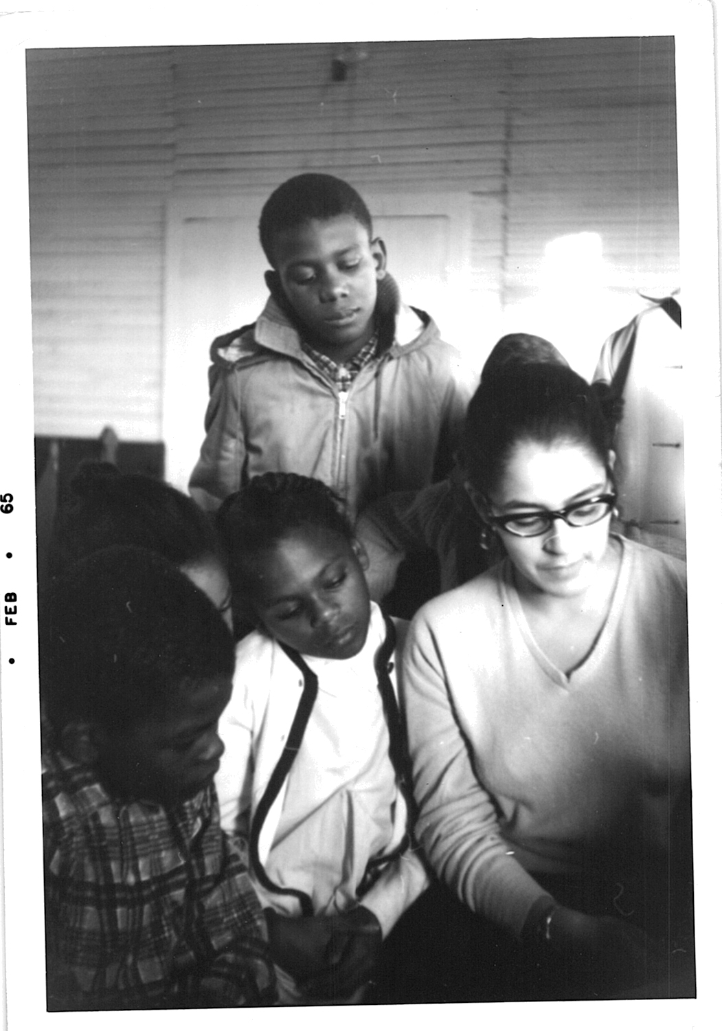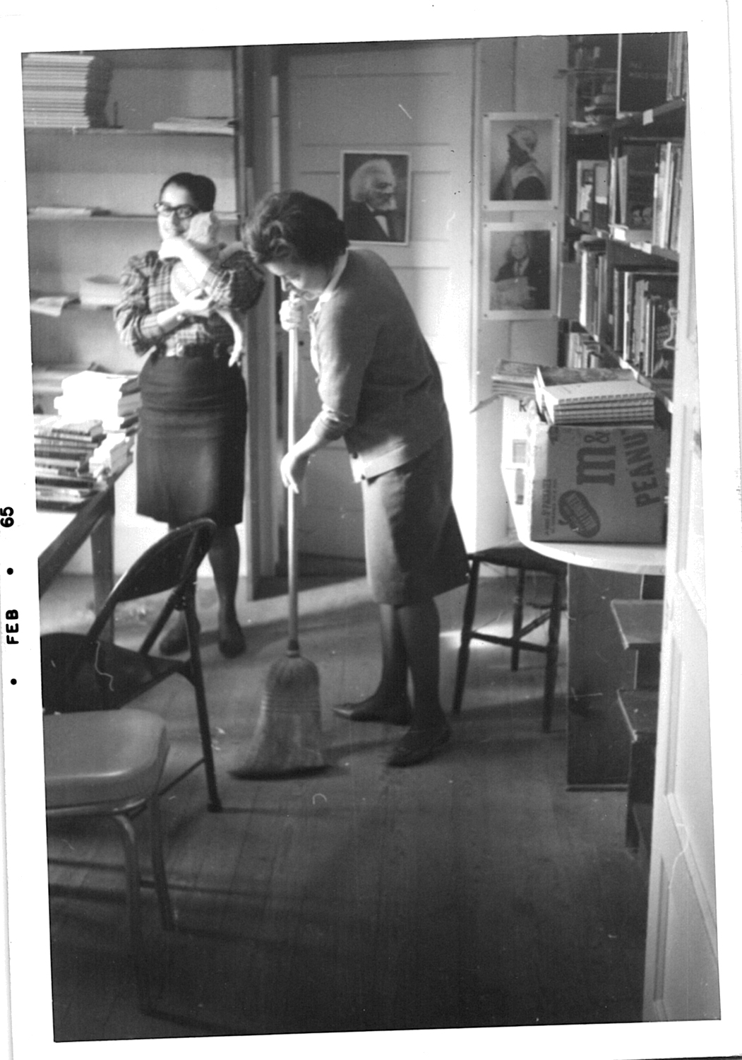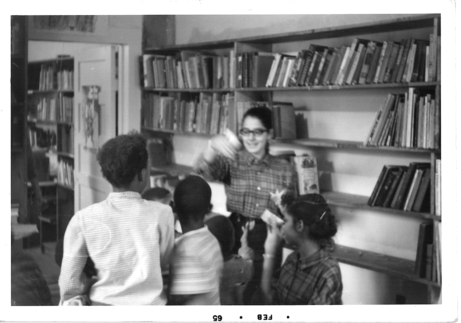 Viki's mom Bobbye Ortiz helping in the Freedom Library