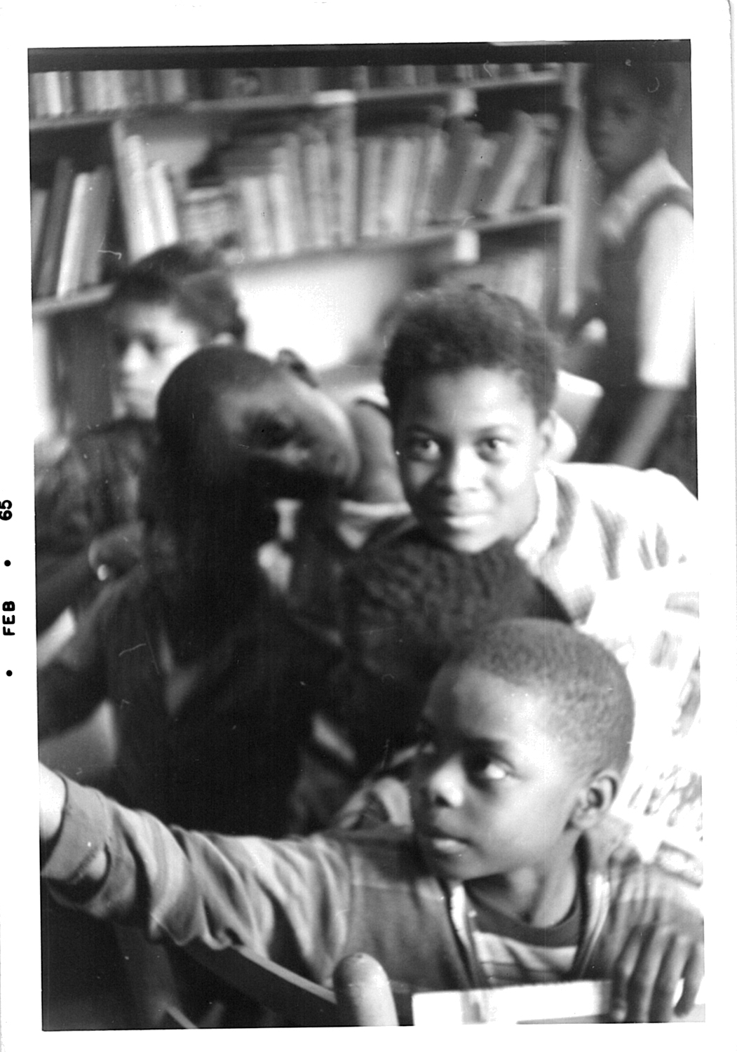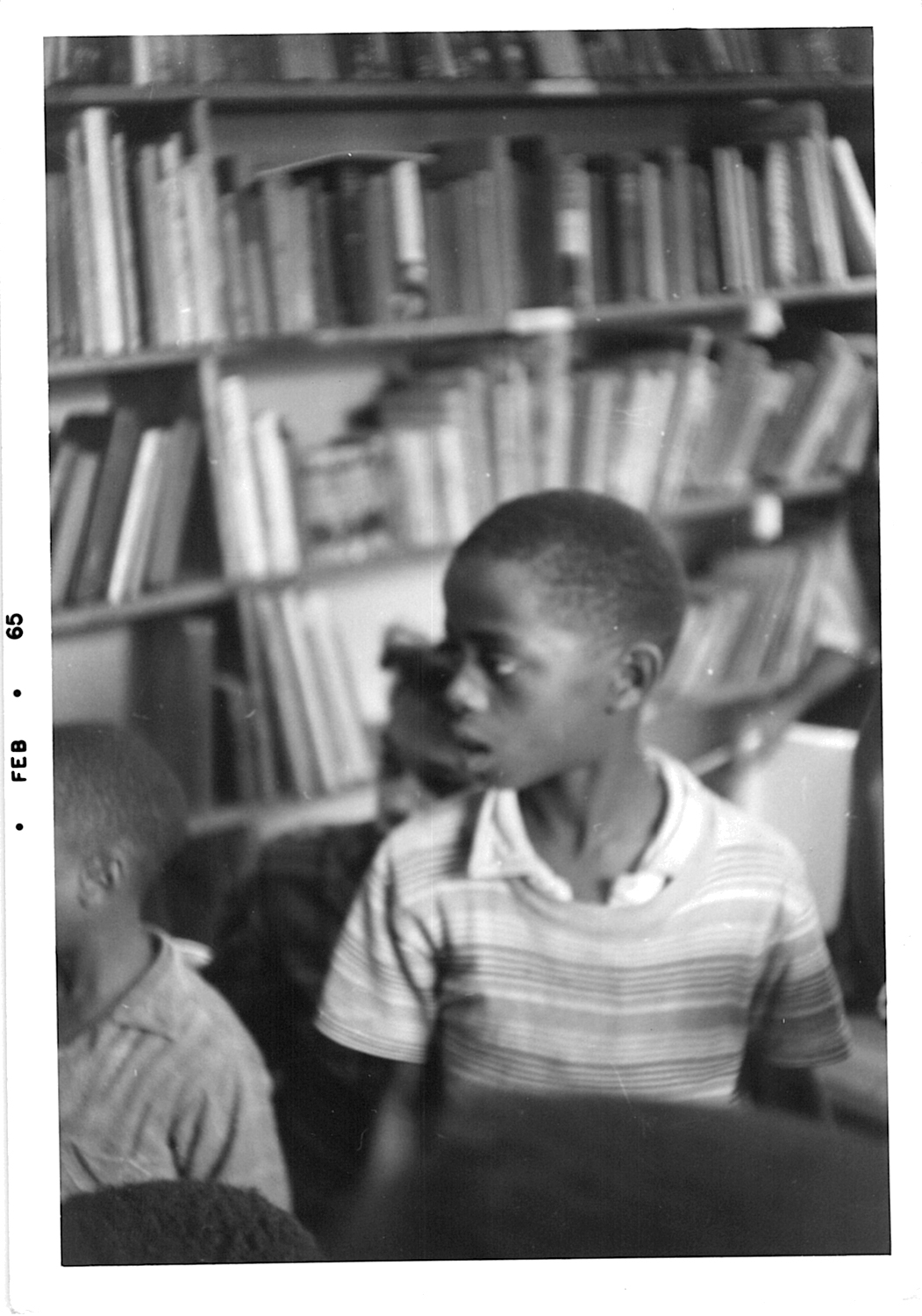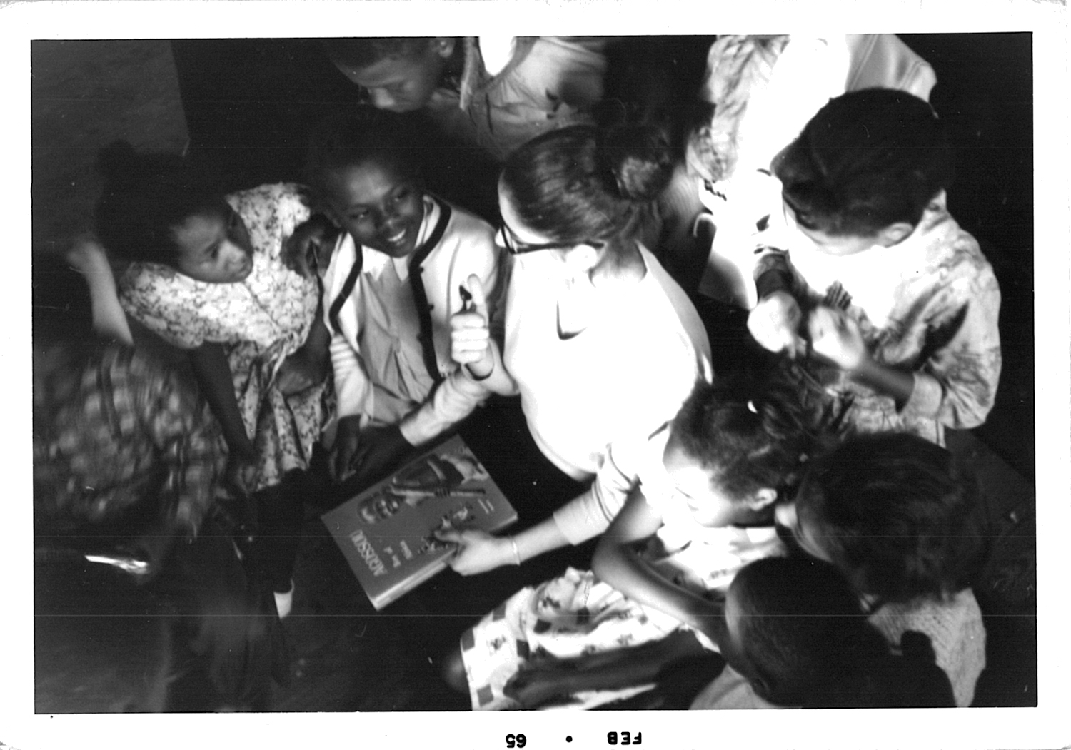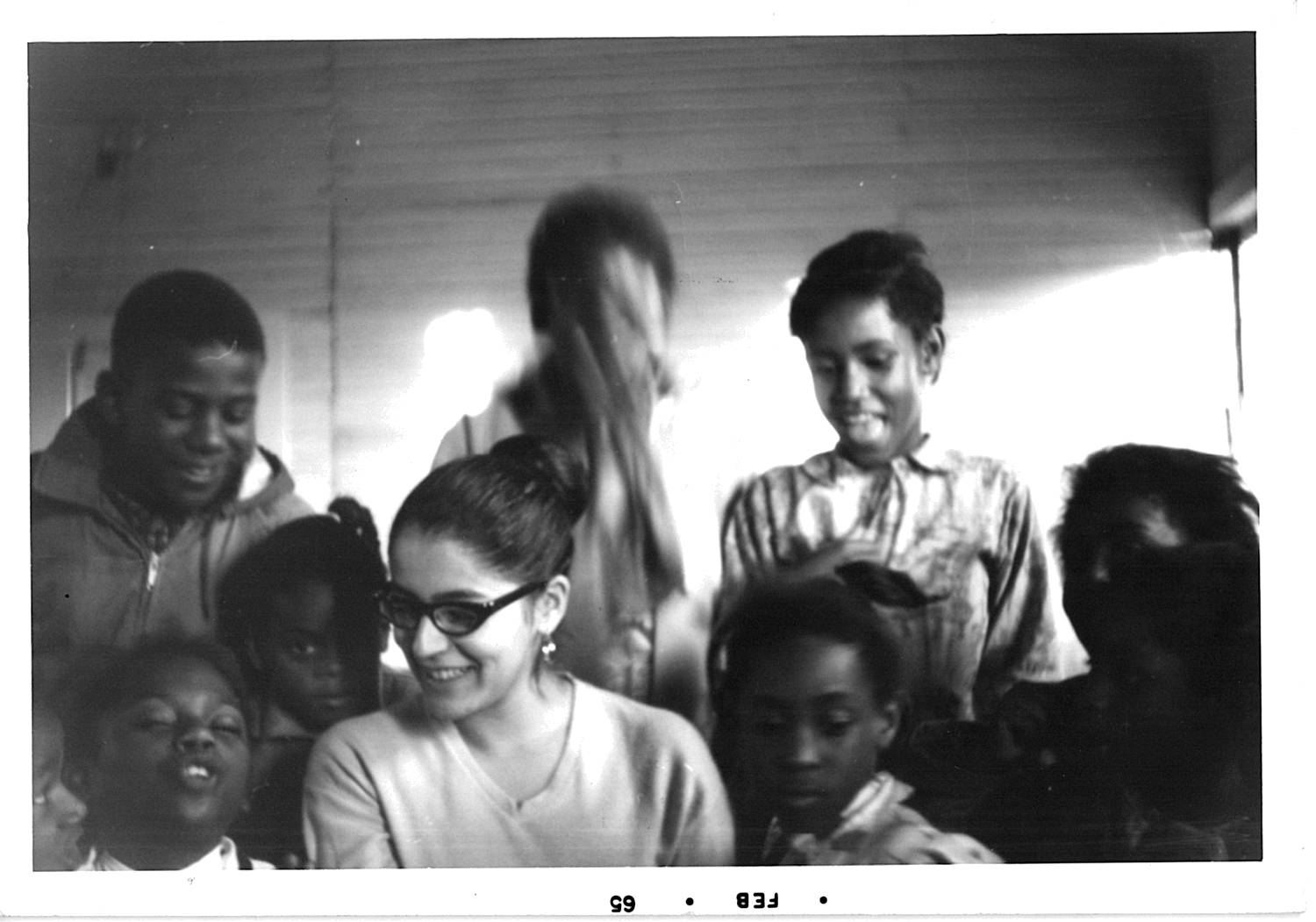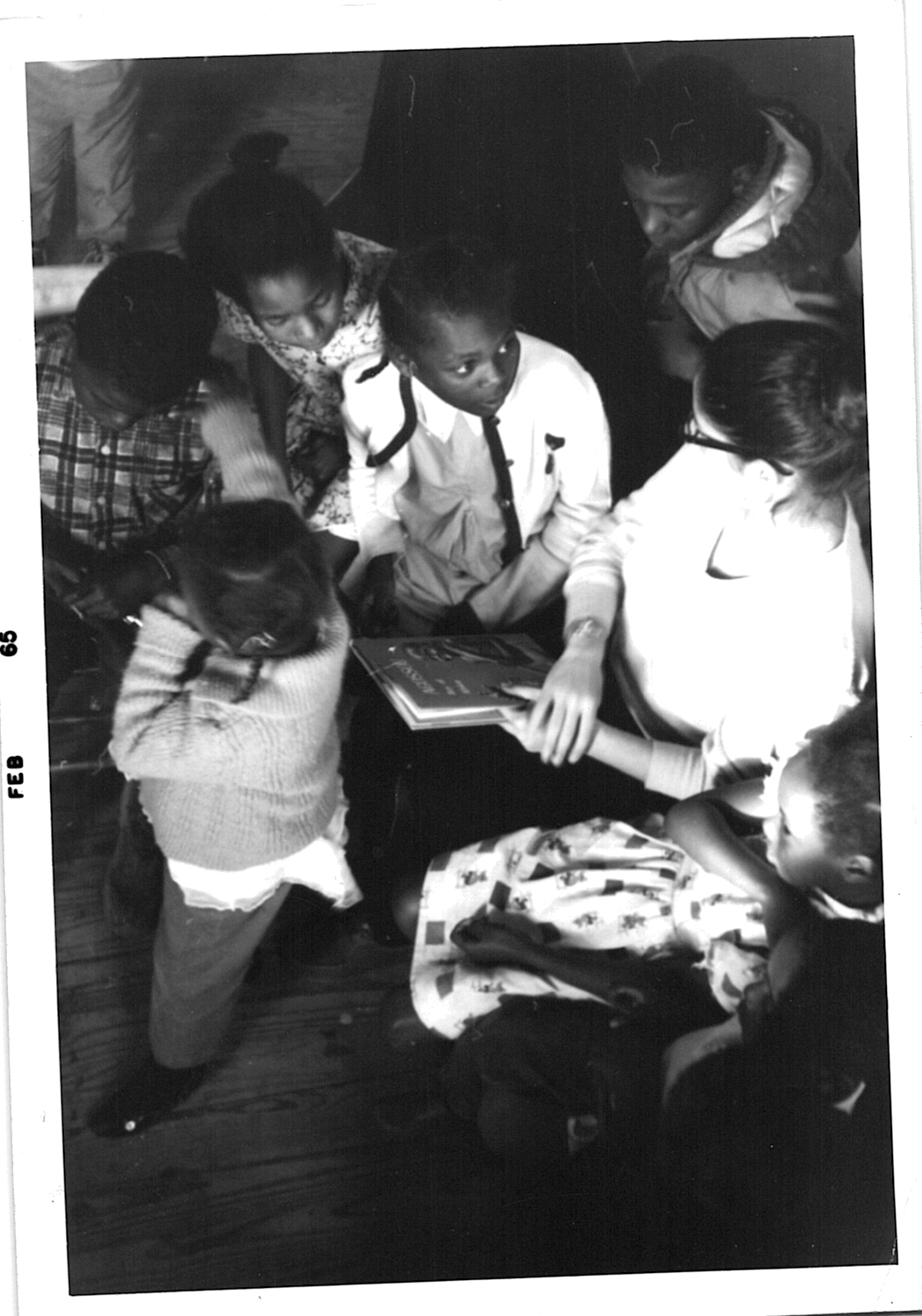 Viki's mom Bobbye Ortiz helping in the Freedom Library